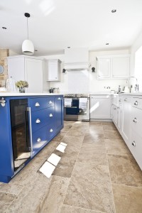 I managed to sell our old kitchen on e-bay, so this was a real bonus. When the old kitchen was removed the room was stripped back to its bare bones, including removing of tiles, a small amount of re-plastering and then the room was redecorated, including walls and wood work. Getting power to the central island seemed an impossible task at first as we didn’t want to replace the flooring, however Stefan came up with a solution.