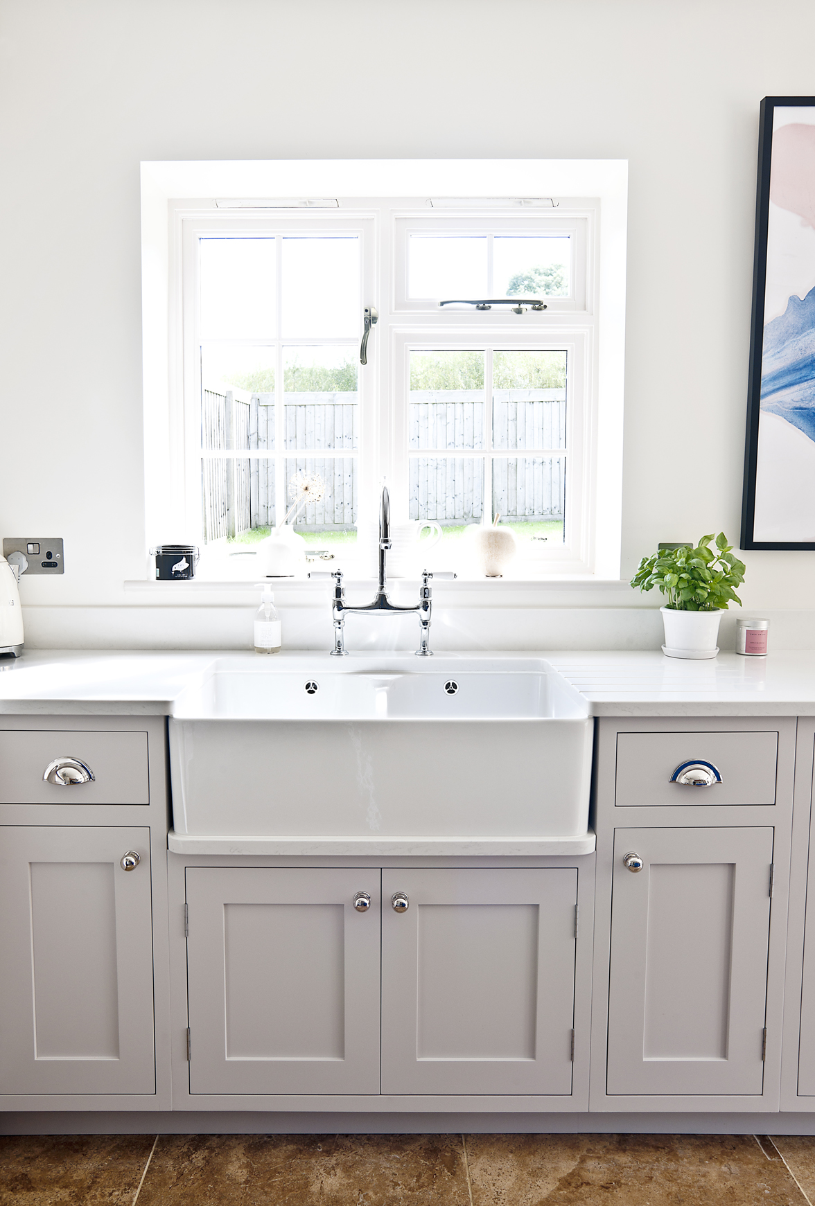 We knew that we had to get this right, as this is where the family would spend most of our time, we decided that we wanted a modern look but still respect the age and features of our cottage. So valuable research was spent on Instagram for design inspiration and also the White Company brochure provided images of a lifestyle that we both liked. The kitchen is already located in a great sunny room and we wanted the new kitchen to maximise on this, so we knew that we wanted a painted kitchen with a fresh and bright look.